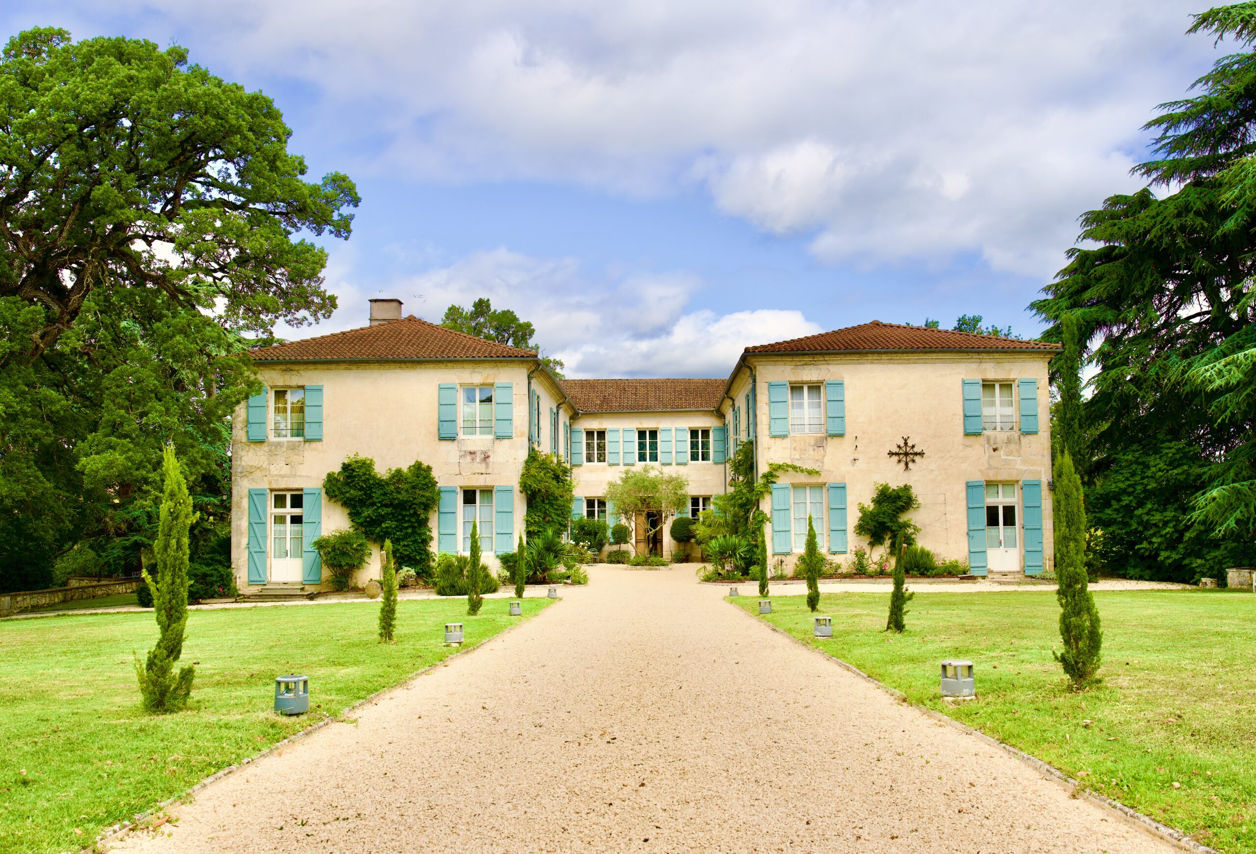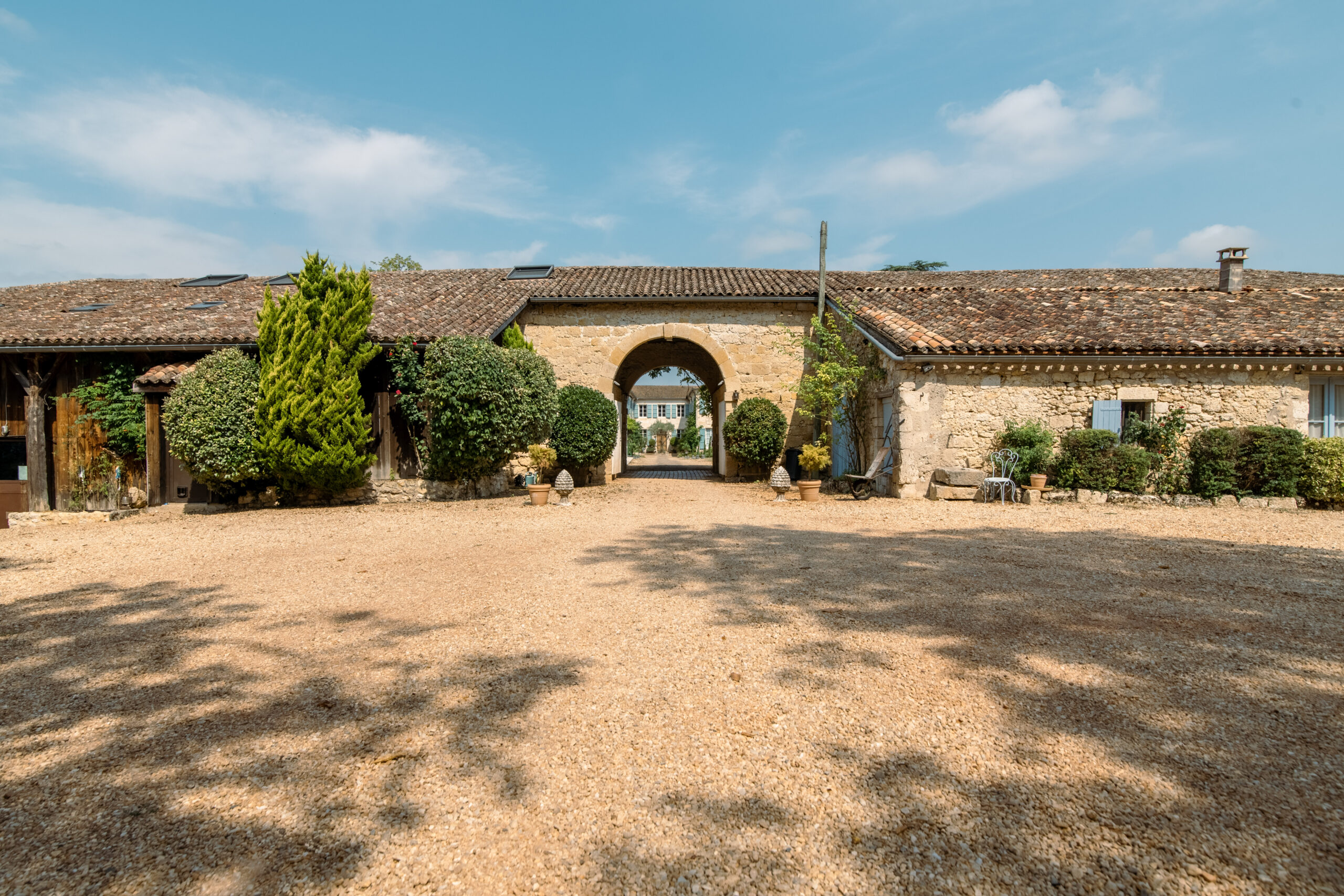 The Château and its outbuildings are nestled on eight private hectares in the Gascony hills, just 10 minutes from Boé and 15 minutes from Agen. Located nearly equidistant from Bordeaux (90 miles) and Toulouse (70 miles), Agen can be reached by motorway and TGV trains, including a direct train from Paris that takes just over 3 hours. The small airport in Agen is now closed to commercial flights, so Toulouse Blagnac is the closest airport with further options in Bordeaux, and Bergerac in the summer months.